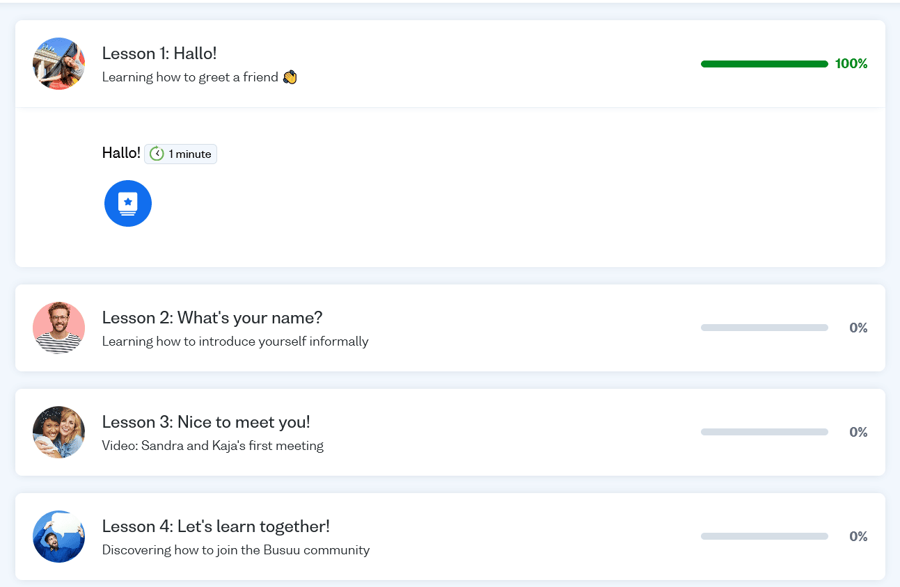 Like Babbel, Busuu uses a series of auditory and visual stimuli to teach all four language skills.